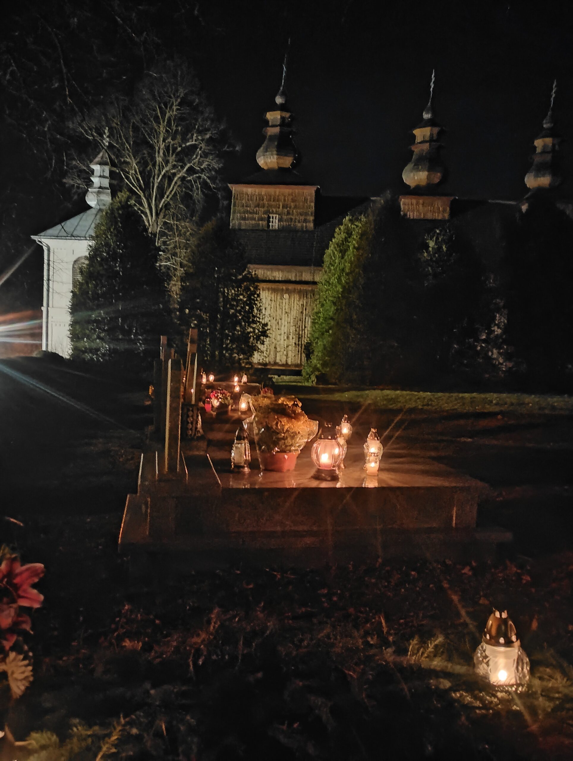 Nasz parafialny cmentarz w Wisłoku Wielkim w wieczór 1 listopada 2025 r.